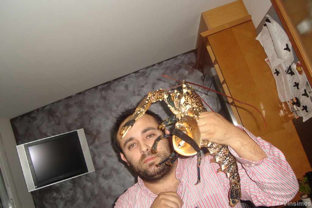 Paquito era grande y guapo, a parte de que estaba vivo, muy importante para hacer un buen caldo DE bogavante... Para que os hagáis una idea es una botella de vino de 0,75cl...